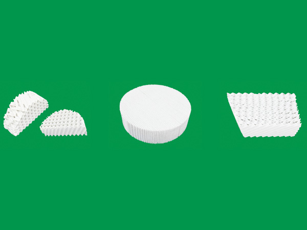 - 陶瓷規(guī)整填料與散堆填料相比具有效率高,降壓低,處理量大,持液量小,放大效應(yīng)不明顯,操作彈性大等一系列優(yōu)點(diǎn)。它由許多具有相同幾何形狀的填料單元體構(gòu)成。陶瓷規(guī)整波紋